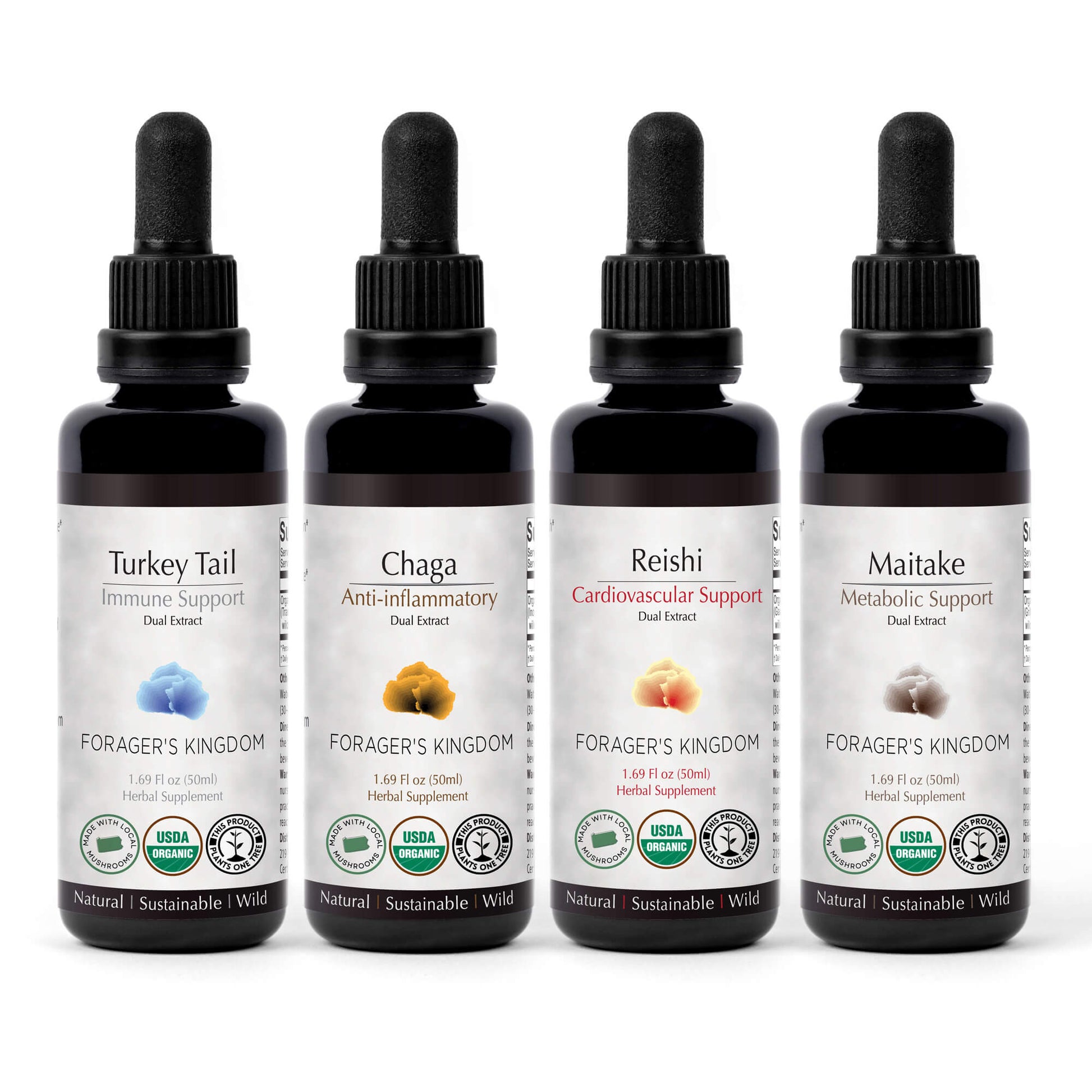 All of our mushroom extracts are made with sustainably wild harvested and organic fruiting bodies. We never use myceliated grain or any other starchy fillers.