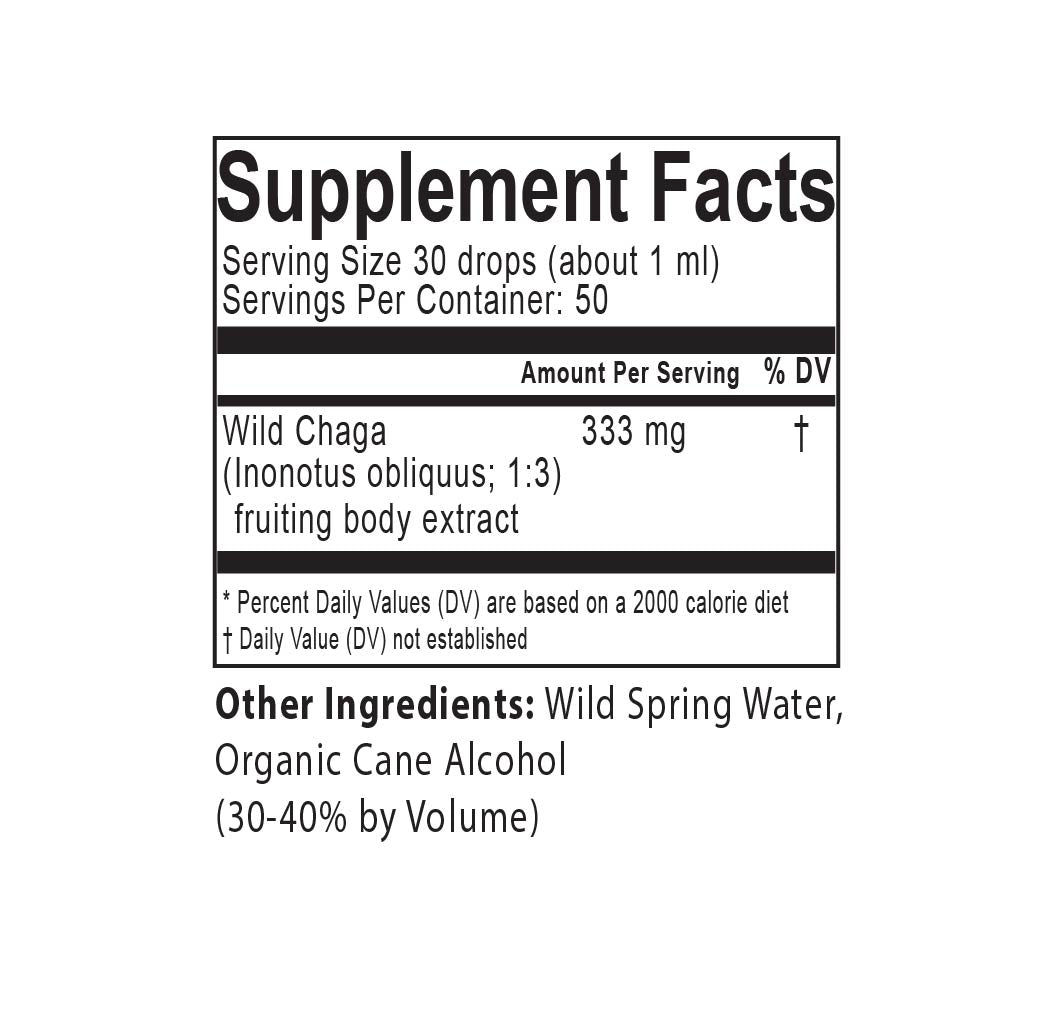 Chaga - Wild Chaga Fruiting Body (Inonotus obliquus), Wild Spring Water, Organic Cane Alcohol